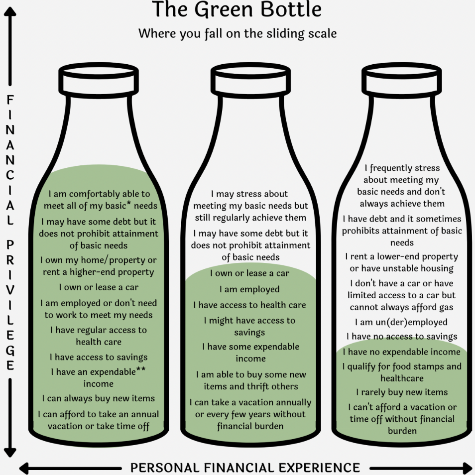 Alexis J Cunningfolk designed a very helpful graphic - The Green Bottle: Where You Fall on the Sliding Scale - that can help you orient yourself.